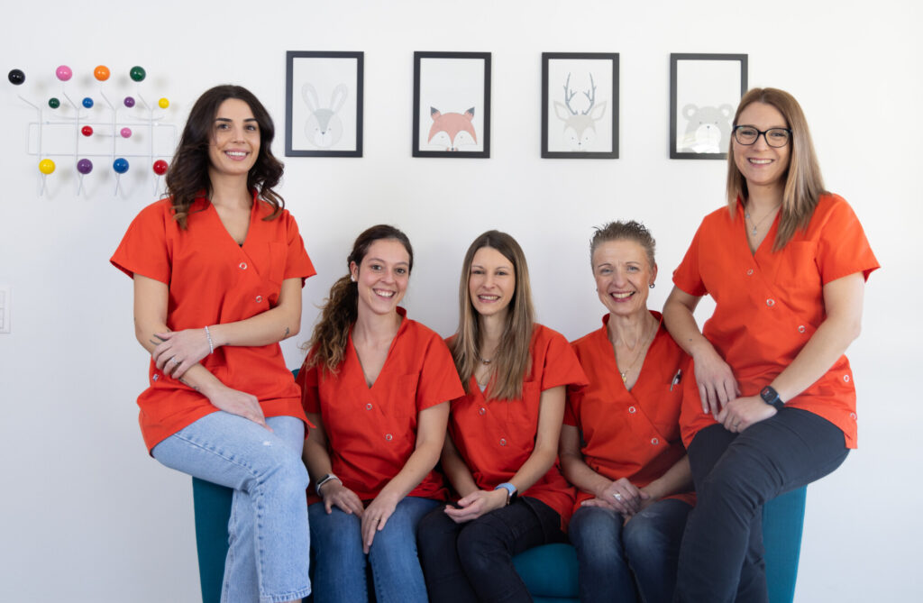 Assistenti di studio medico e segretariato. Da sinistra Veronica, Rita, Giada, Jutta e Giada